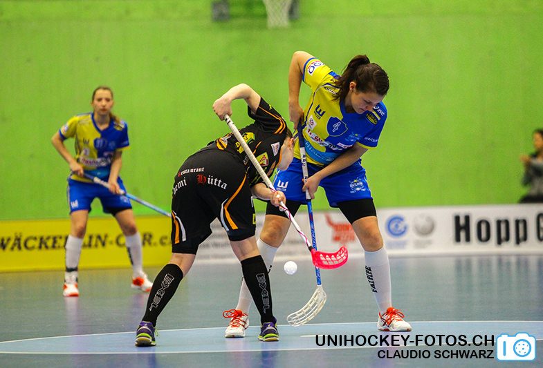 Michelle Wiki bedankt sich bei Fabienne Kuoni für den mustergültigen Pass, © unihockey-fotos.ch