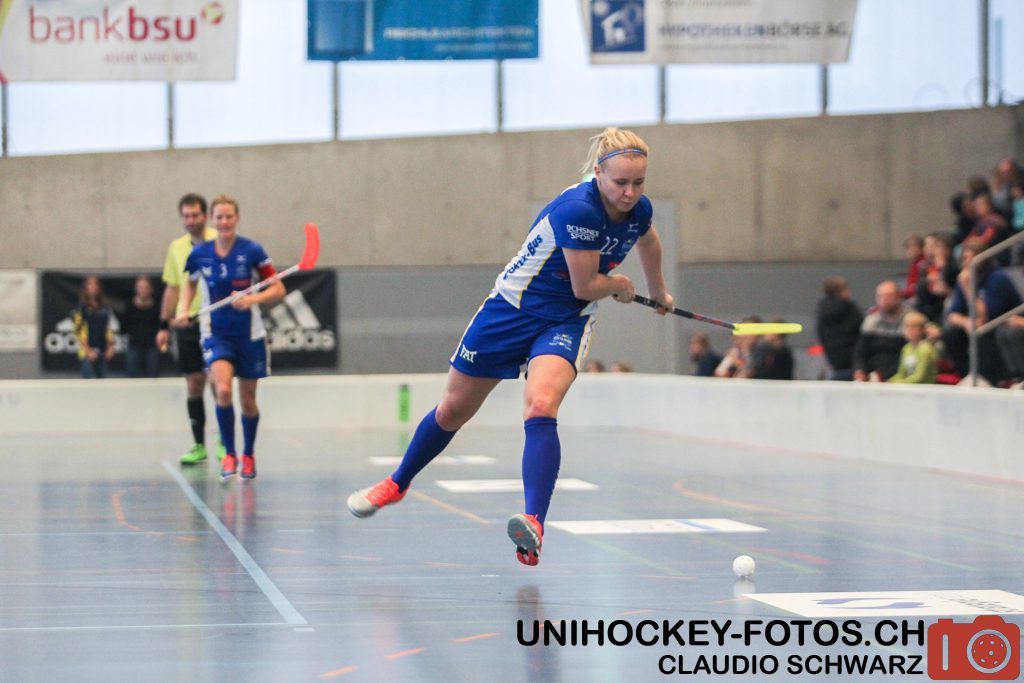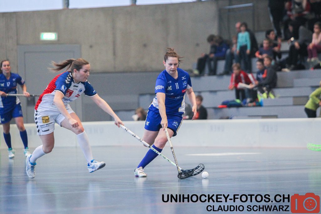 Mit einem Doppelschlag in der 8. und 10. Minute setzten sich die Dietlikerinnen ein erstes Mal ab. Andrea Gämperli schoss nach schöner Ballbehandlung das 1:0 während Tanja Stella mit dem 2:0 nachdoppelte. Für Stella war es ein spezielles Spiel. Sie hat ihre Unihockey-Karriere in Uster begonnen. Nach dem Spiel verriet sie, dass sie wie im Vorfeld angekündigt mit dem Fahrrad in die Buchholz Halle gefahren sei.