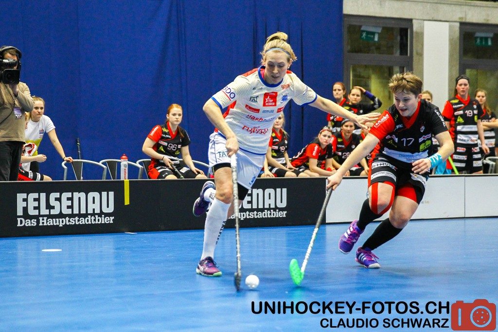 Im dritten Drittel reduzierte Dietlikon aufgrund eines Ausfalles auf 2 Linien und die Red Ants drehten plötzlich auf. Bis kurz vor Schluss kamen die Winterthurerinnen gar auf 6:5 an Dietlikon ran und schossen 56 Sekunden vor Ende des Spiels noch den Ausgleich. Die Verlängerung brachte keine Entscheidung, das Penaltyschiessen musste entscheiden. Eine überragende Monika Schmid hielt alle 3 gegnerischen Penalties, Dietlikon hingegen konnte 2 Mal einnetzen und verteidigte damit den Titel.