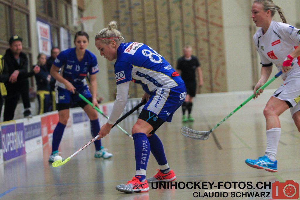 Auch im zweiten Spielabschnitt gingen beide Teams ein hohes Tempo und lieferten sich packende Zweikämpfe. In der 23. Minute gelang Evelyne Ackermann der erste Treffer für Dietlikon. Von Andrea Gämperli bedient nutzte sie die ihr im hohen Slot gebotenen Freiheiten gekonnt aus. Dieses Tor setzte bei den Dietlikerinnen, insbesondere Ackermann weitere Energien frei. Die St. Gallerin doppelte mit zwei weiteren Treffern nach und erzielte innert knapp 6 Minuten einen lupenreinen Hattrick. Nur zwei Minuten nach ihrem dritten Treffer hatte Ackermann gar ihr persönliches viertes Tor auf dem Stock. Dieser Schuss wurde aber die perfekte Vorlage für Topscorerin Andrea Gämperli, welche nur noch abstauben musste.