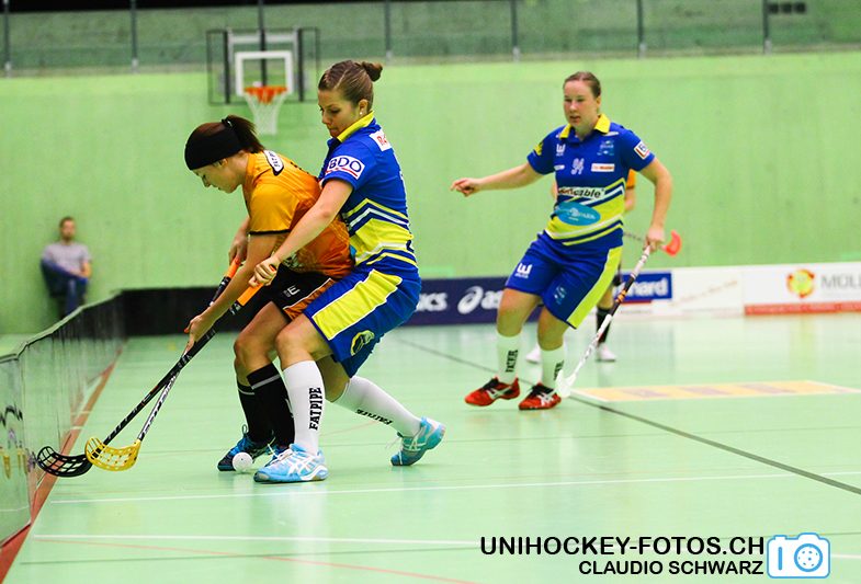 Die Gelb-Blauen starteten gut und konzentriert in die Partie. Topscorer Nina Bärtschi brachte ihre Farben nach gut neun Minuten bereits mit 2:0 in Führung. Sonja Putzi aber brachte ihre Farbennoch innnerhalb einer Minute zurück ins Spiel. Evelyne Ackermann sowie Katrin Zwinggi und nochmals Putzi zeichneten sich für die Tore zum Zwischenstand von 3:3 verantwortlich. Der Start ins Mitteldrittel ist für Dietlikon dann einer zum vergessen. Bis zu Spielmitte zogen die Gäste bereit auf 3:6 davon. Monika Schmid im Tor des Heimteams bei jedem Tor praktisch machtlos. Die Freiheiten für die Gäste-Stürmer am hinteren Pfosten stehend jeweils königlich. Doch die Gelb-Blauen können sich nochmals fassen. Ackermann mit einem Ablenker und Rebecca Hermann in Überzahl bringen ihre Farben wieder zurück ins Spiel.