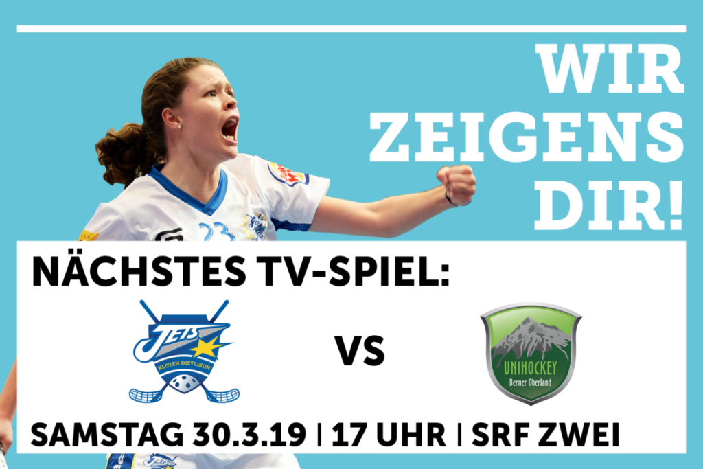 Das NLA-Spiel Kloten-Dietlikon Jets gegen Unihockey Berner Oberland ist das erste Frauen Playoff-Spiel, welches SRF live überträgt. Der Start der Halbfinal-Serie kann am nächsten Samstag 30. März um 17 Uhr auf SRF zwei mitverfolgt werden.