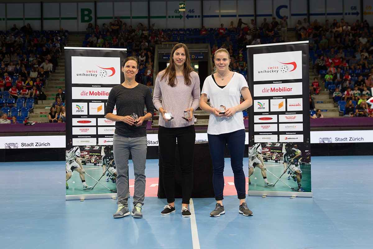 Während der ersten Drittelspause des Männer Supercups wurden die UHCD-Akteurinnen Monika Schmid, Andrea Gämperli und Simone Berner geehrt.