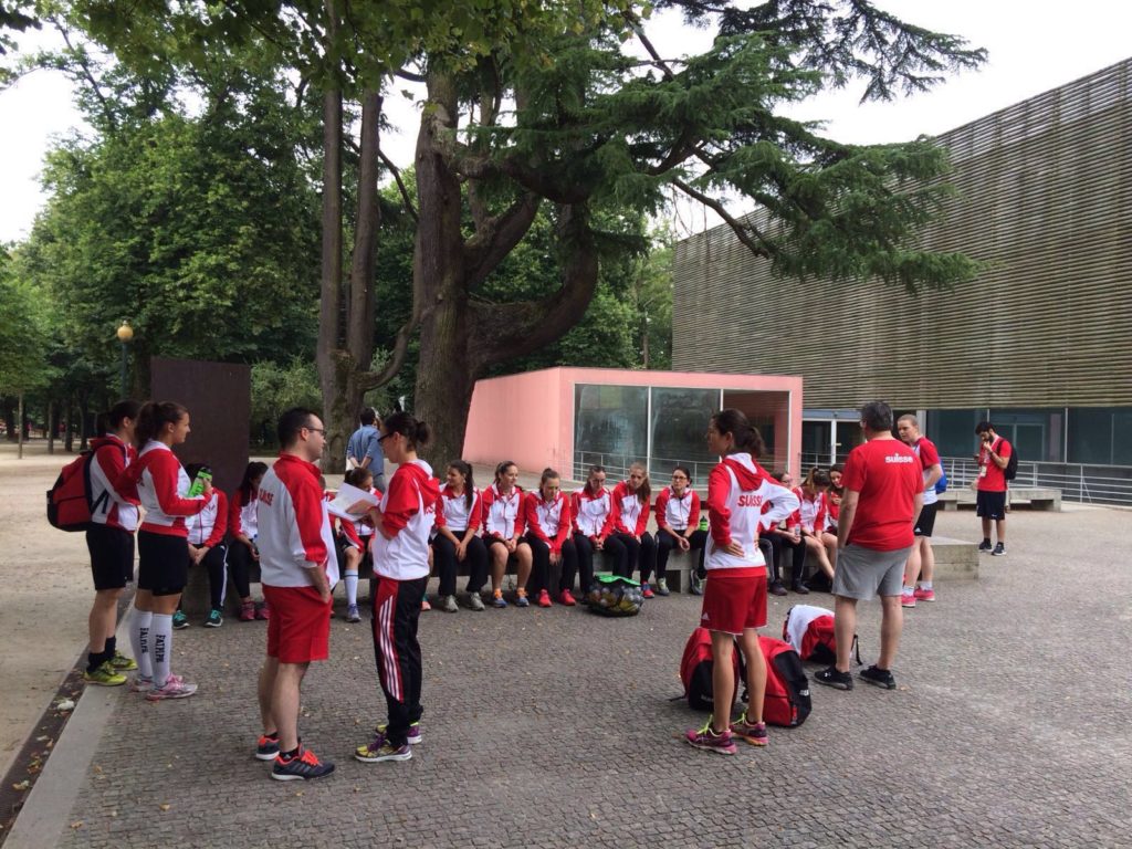 Das Frühstück am nächsten Morgen präsentierte sich in einem anständigen Rahmen und wir konnten gestärkt unsere erste Theoriestunde im Park bestreiten. Am Nachmittag durften wir dann in der Matchhalle trainieren. Frisch geduscht und herausgeputzt machten wir uns auf den Weg zur Eröffnungsfeier. Von der Polizeieskorte begleitet wurden wir so schnell wie möglich mit dem Bus ins Stadtzentrum von Porto gebracht. Der Verkehr in Porto wurde grossräumig angehalten, damit unser Umzug und die Fahnenzeremonie von der breiten Masse bejubelt werden konnte (auch viele Schweizer Fan-Touristen waren dabei). Die gute Stimmung in Portugal verbreitet sich schnell durch alle Nationen und die Begeisterung und Hilfsbereitschaft der Beteiligten ist in jeder Aktion zu spüren. Unser Guide José leistet ganze Arbeit. Danach ging es nur noch ab ins Bett.